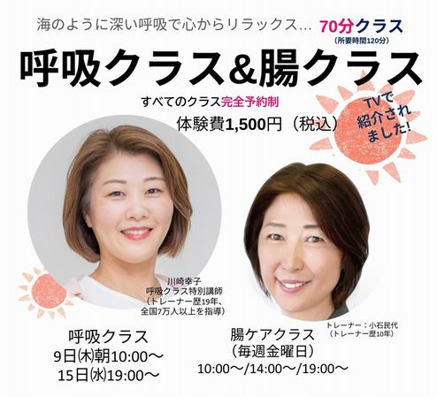 ◎呼吸クラス 9日㈭朝クラス、15日㈬夜クラス