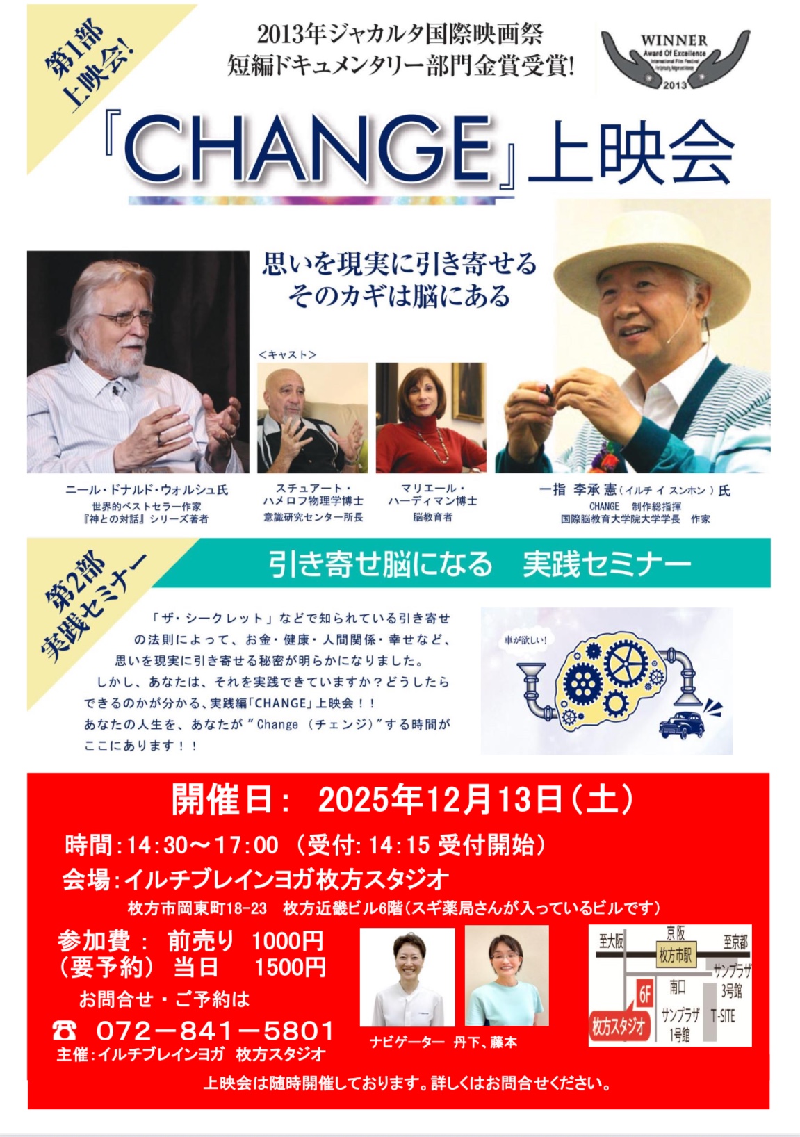 【枚方】 映画『Change』上映会&引き寄せの法則実践講座