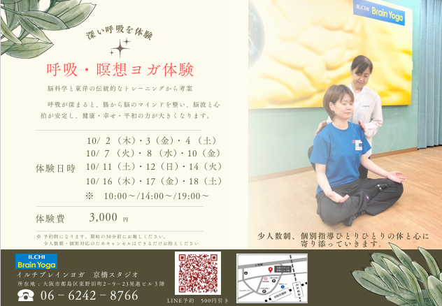 呼吸が深まると、腸から脳のマインドが整い、脳波と心拍が安定し、健康・幸せ・平和の力が大きくなります。