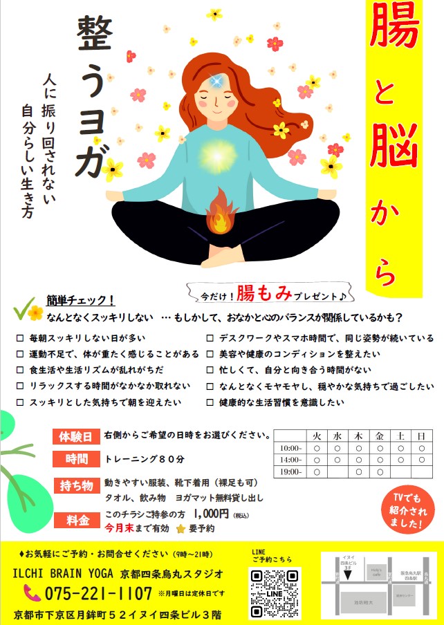 【京都四条烏丸】2月28日(土)まで 腸と脳から整うヨガ