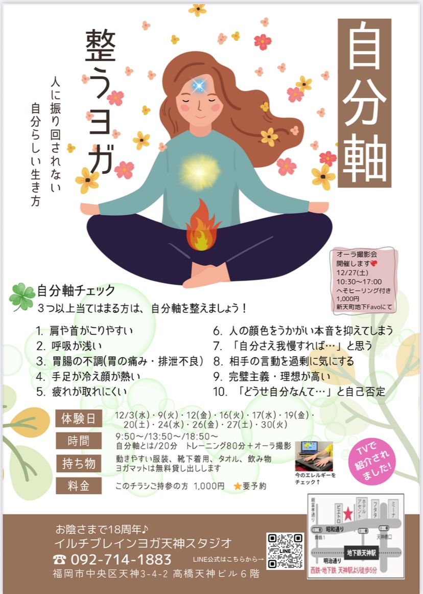 【天神】12月30日(火)まで 自分軸 整うヨガ 人に振り回されない、自分らしい生き方