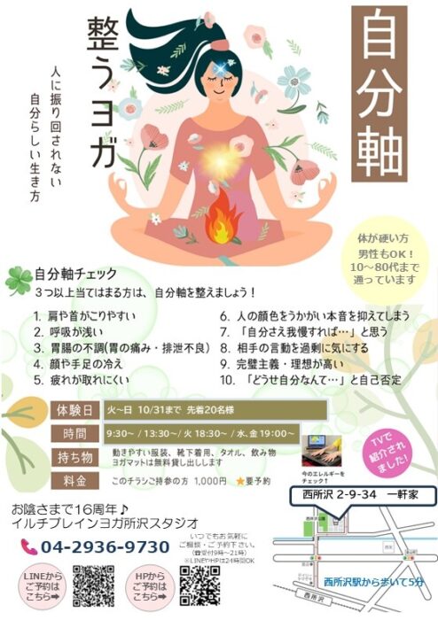 【所沢】10月31日(金)まで 自分軸 整うヨガ