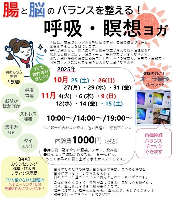 自然治癒力アップ集中力アップダイエット体質改善ストレス軽減丹田強化呼吸法瞑想法その他(備考欄にご入力ください)