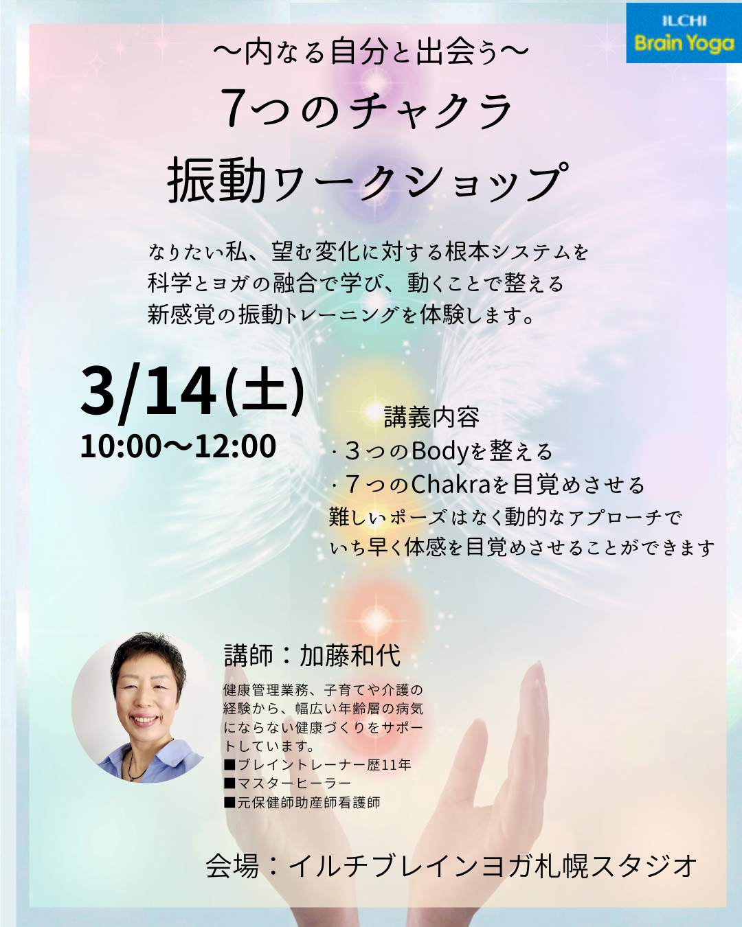 【天神】3月31日(火)まで 自分軸 〜整うヨガ〜🧘 Three Bodies & Seven Chakuras 人に振り回されない、自分らしい生き方