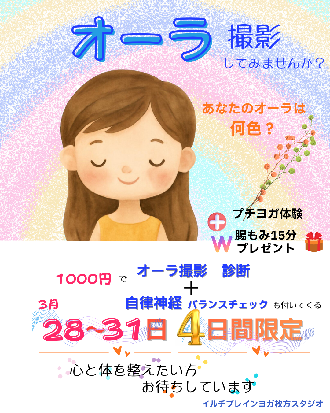 【枚方】3月31日(火)まで 呼吸瞑想で腸から元気に❣️