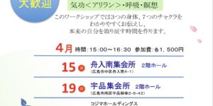 【広島】4月 「3つの体・7つのチャクラ体験会✨」〜ARIRANG気功・呼吸瞑想〜
