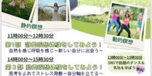 内容 🧘1部11:00〜12:30 静的瞑想 自然を感じ、呼 …